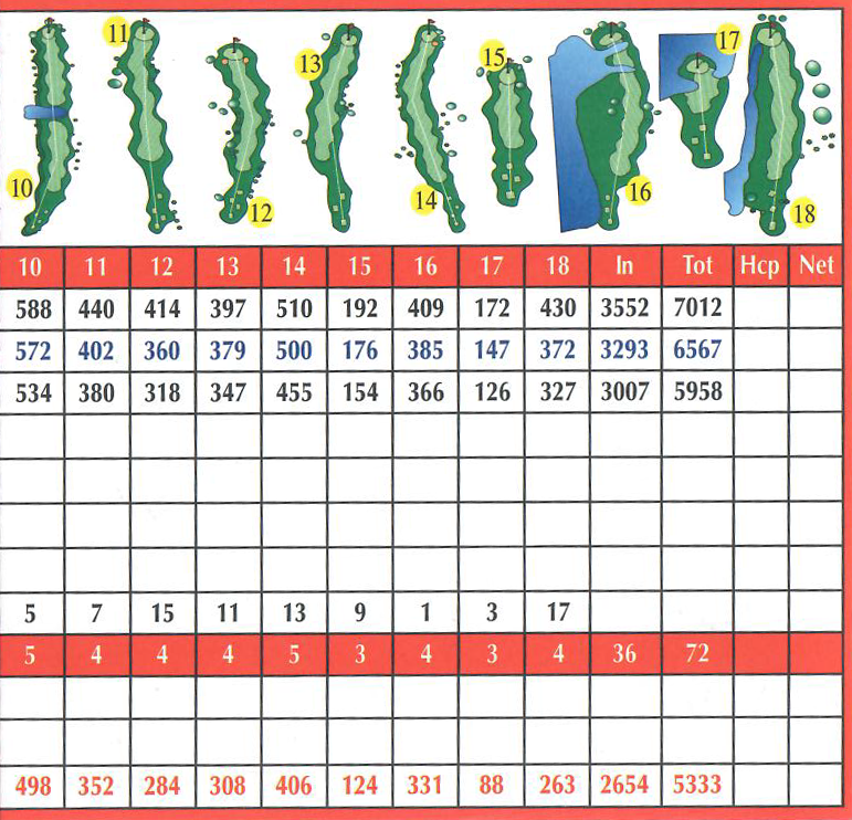 Par: 72 Length: 7,012/6,567/5,958/5,333 Slope: 119/117/115/111